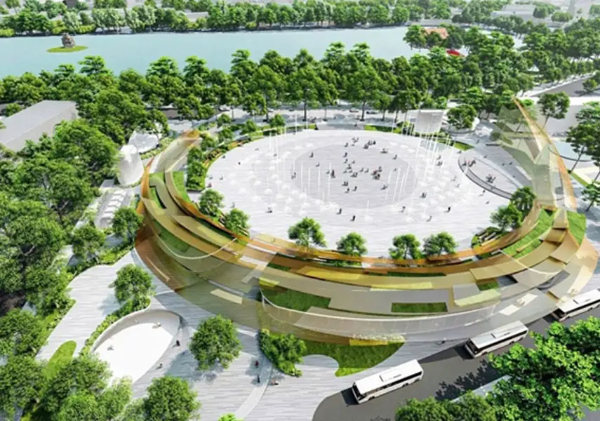 地区人民委員会によると、この広場は周辺の緑地と密接に連携し、歩行者に優しく、将来の都市鉄道システムとの良好な接続性を備えた開放的な公共エリアを創出する。